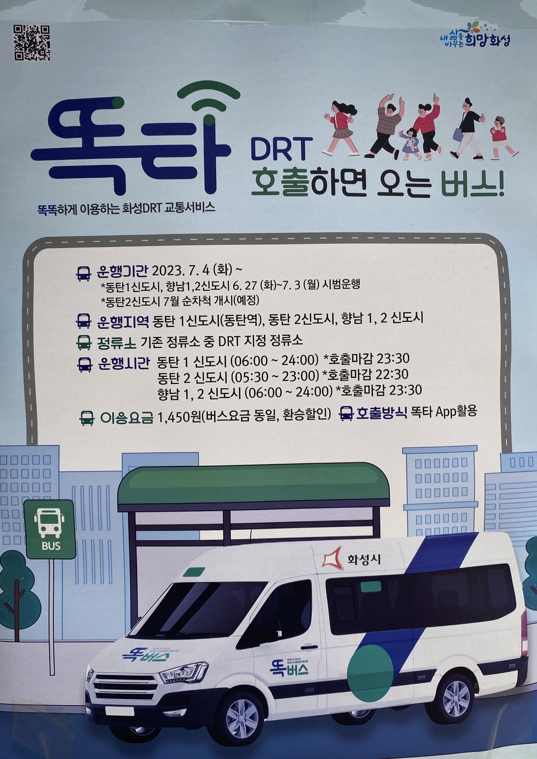 동탄, 향남에서 볼 수 있는 호출 하면 오는 버스 "똑타"